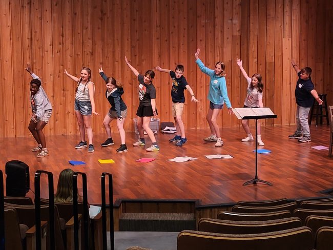 During the audition, up to 4 Assistant Directors (ADs) ages 10 and older are selected to help teach and direct the show early in the week and take on technical responsibilities at performance time. Their logistical help and creative ideas are a vital part of our process and the experience of the ADs can be just as valuable as that of any cast member. Anyone wishing to be an Assistant Director must take part in the audition session. It is a common misconception that junior high and high school students can only be involved in an AD capacity. Please note that there are roles in the show designed for older students as well. If your child wants to be an AD, please let the check-in table know right away and they will inform the actor/directors.